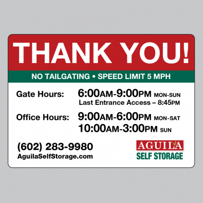 Gate sign is 42″w x 30″ h, directly printed on aluminum sandwich board, with rounded corners. Allow one week for delivery. Pricing does not include shipping or any applicable tax.