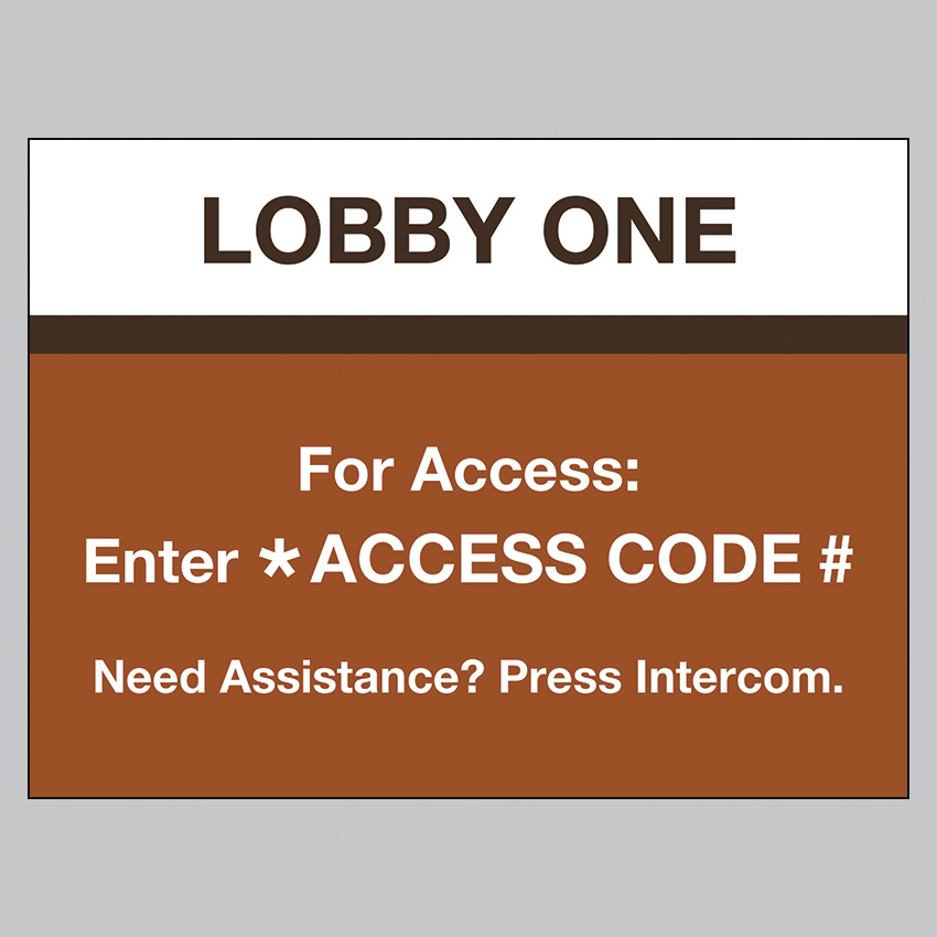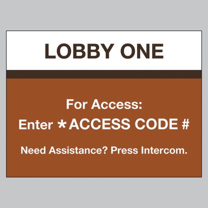 Lobby One sign is 8″w x 6″h, directly printed on aluminum sandwich board. Allow one week for delivery.  Pricing does not include shipping or any applicable tax.