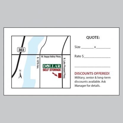 Business cards are two-sided, size is 3.5″w x 2″h on16pt card stock uncoated front and back, to make it easy to write on. Available in quantities of 250, 500, and 1000. Pricing does not include shipping or any applicable tax.