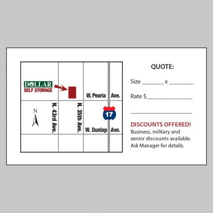 Business cards are two-sided, size is 3.5″w x 2″h on16pt card stock with high gloss coating on the front and uncoated on the back side. Available in quantities of 250, 500, and 1000. Pricing does not include shipping or any applicable tax.