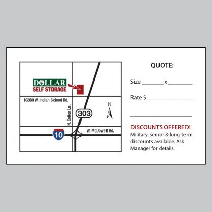 Business cards are two-sided, size is 3.5″w x 2″h on16pt card stock with high gloss coating on the front and uncoated on the back side. Available in quantities of 250, 500, and 1000. Pricing does not include shipping or any applicable tax.