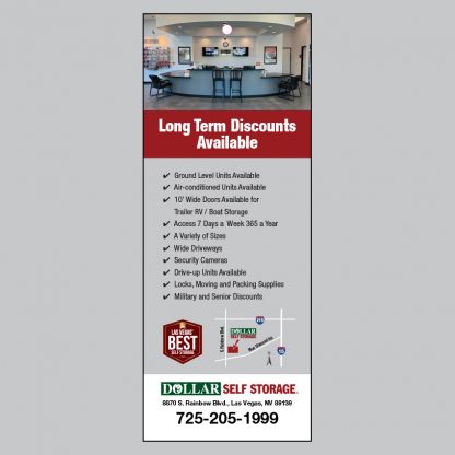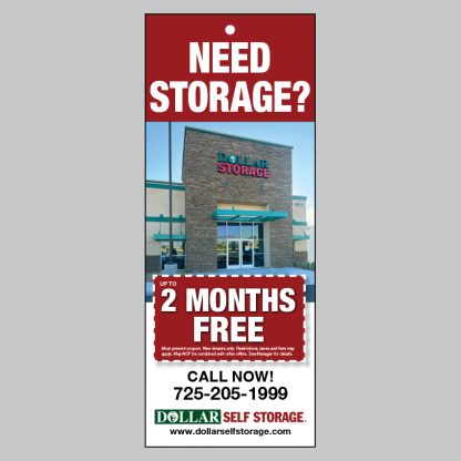 Doorhangers are 4.25″w x 11″h printed 14pt cardstock, with UV (high gloss) coating both sides. They feature a 1/4″ hole which you can loop a rubber band through, making it easy to hang on a doorknob or lever. Allow two weeks for delivery. Pricing does not include shipping or any applicable tax.
