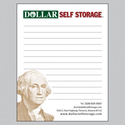 Notepads are 4.25″w x 5.5″h. Each pad has 25 sheets printed one-side on 70lb. premium uncoated stock with chipboard backer. Available in a quanity of 100. Allow two weeks for delivery. Pricing does not include shipping or any applicable tax.