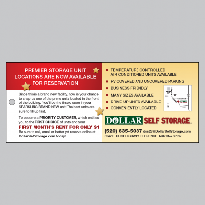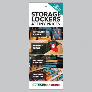 This piece can be used as a Rack Card or a Doorhanger. The size is 4.25″w x 11″h printed 14pt cardstock, with UV (high gloss) coating both sides. They feature a 1/4″ hole which you can loop a rubber band through, making it easy to hang on a doorknob or lever. Allow two weeks for delivery. Pricing does not include shipping or any applicable tax.