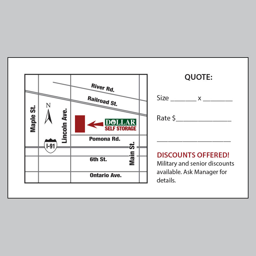 Business cards are two-sided, size is 3.5″w x 2″h on16pt card stock uncoated front and back, to make it easy to write on. Available in quantities of 250, 500, and 1000. Pricing does not include shipping or any applicable tax.