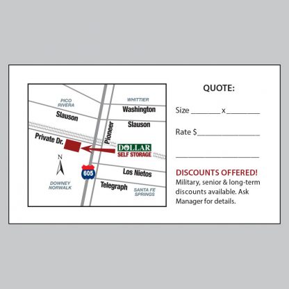 Business cards are two-sided, size is 3.5″w x 2″h on16pt card stock uncoated front and back, to make it easy to write on. Available in quantities of 250, 500, and 1000. Pricing does not include shipping or any applicable tax.