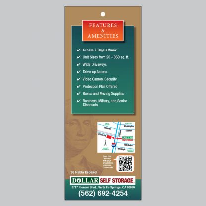 Doorhangers are 4.25″w x 11″h printed 14pt cardstock. They feature a 1/4″ hole which you can loop a rubber band through, making it easy to hang on a doorknob or lever. Allow two weeks for delivery. Pricing does not include shipping or any applicable tax.