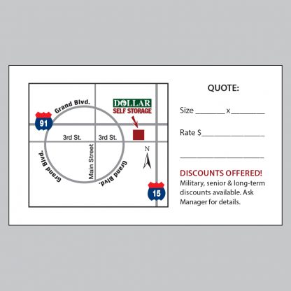 Business cards are two-sided, size is 3.5″w x 2″h on16pt card stock with high gloss coating on the front and uncoated on the back side. Available in quantities of 250, 500, and 1000. Pricing does not include shipping or any applicable tax.
