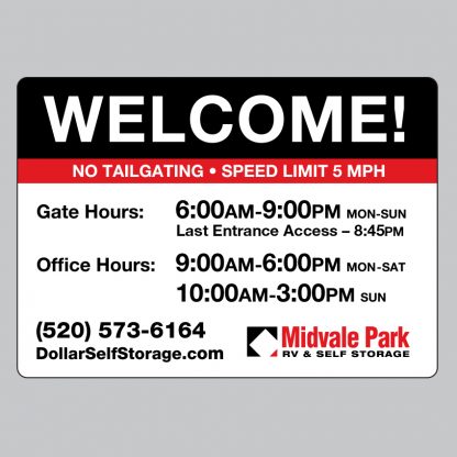 Gate sign is 42″w x 30″ h, directly printed on aluminum sandwich board, with rounded corners. Allow one week for delivery. Pricing does not include shipping or any applicable tax.