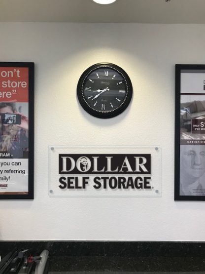 Sign on 1/4″ clear acrylic. Size 32″w x 16″h. Each corner is drill and 5/8″ silver stand-off hardware is included. Allow one week for delivery. Pricing does not include shipping or any applicable tax.